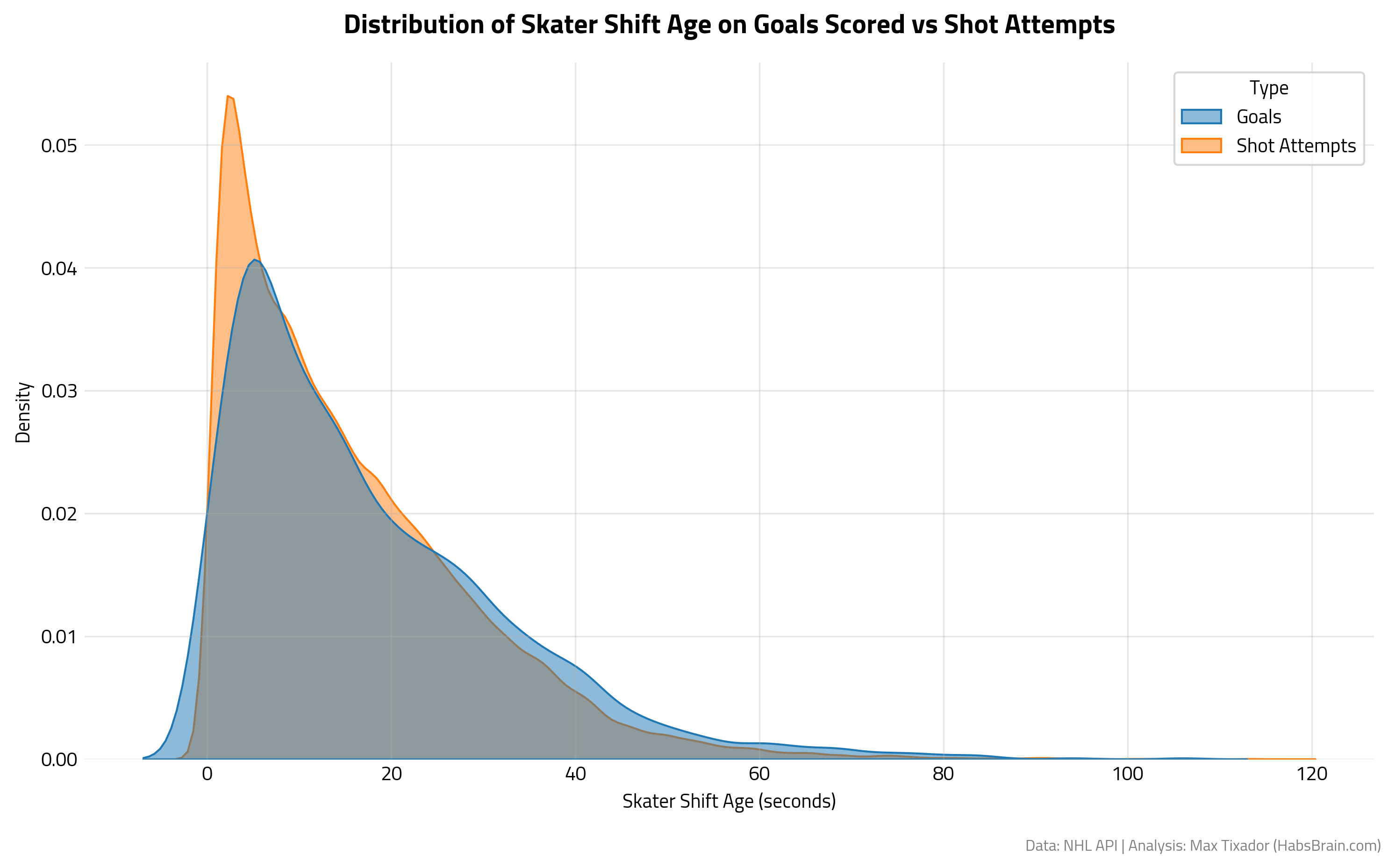 At first, when I decided I would dig into Shift Age, I first wondered about how old are the shifts when goals happen.