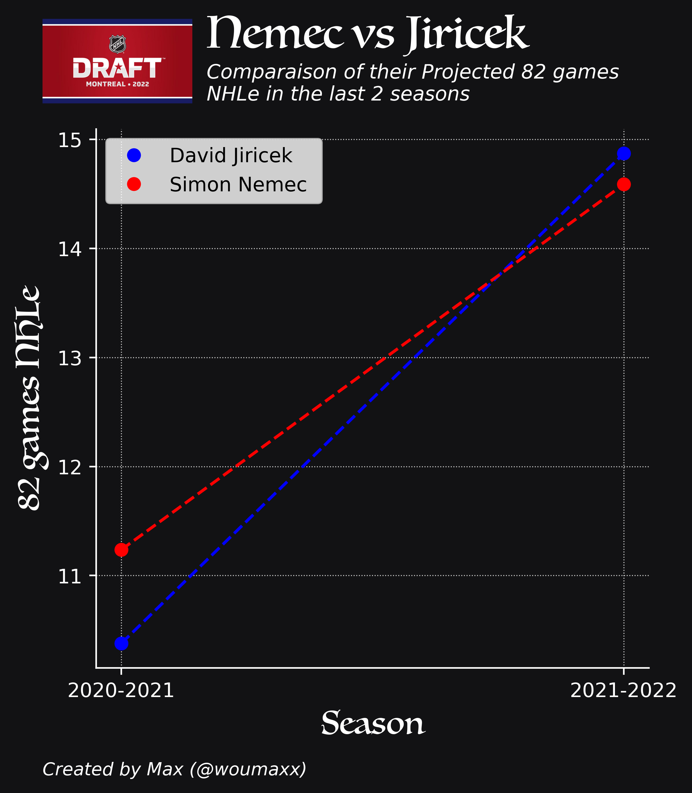 They are really close in terms of NHLe according to my values, so other things than point productions should make the cut to decide who is better.