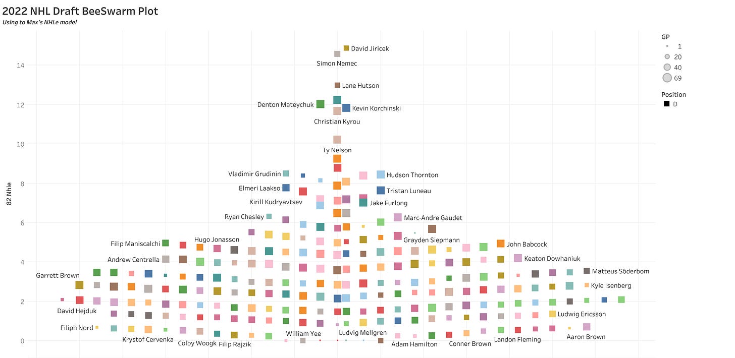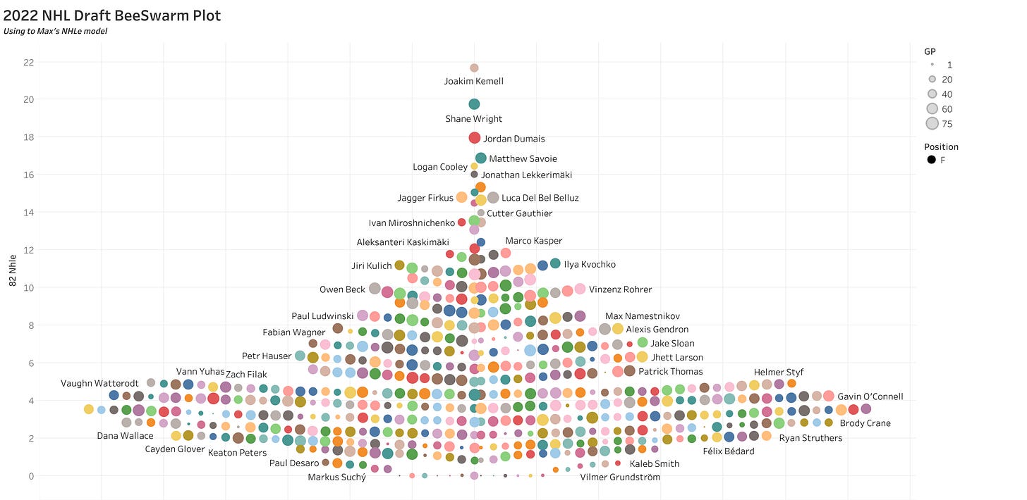 You can find all NHLe values and a couple of graphs on my Tableau page and it gives you the opportunity to play with different features.