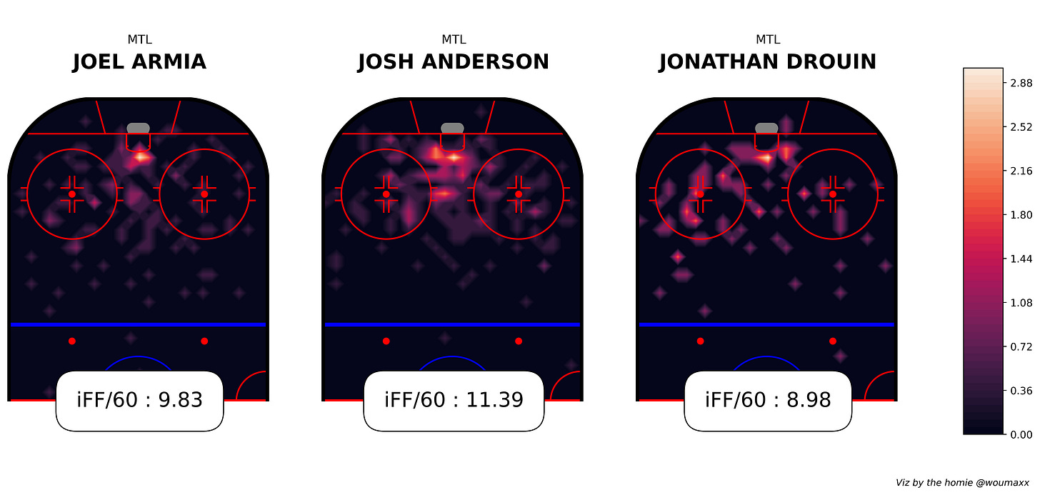 So feel free to have your own opinion on what I just said. In the meantime, let me flex something I have been working on in the last couple of days. Since I have started to gain interest in hockey research and development, I have been trying to replicate everything I have been seeing for the simple purpose of learning how it is done (and not making money). I have learned how make Dashboards in sheets when I spent a full month replicating player cards like @JFreshHockey, I have built an NHLe model after Patrick Bacon and CJ Turturo built theirs, etc. This time, I have attempted to replicate the Viz from one of the biggest Visualizer in hockey : @IneffectiveMath.